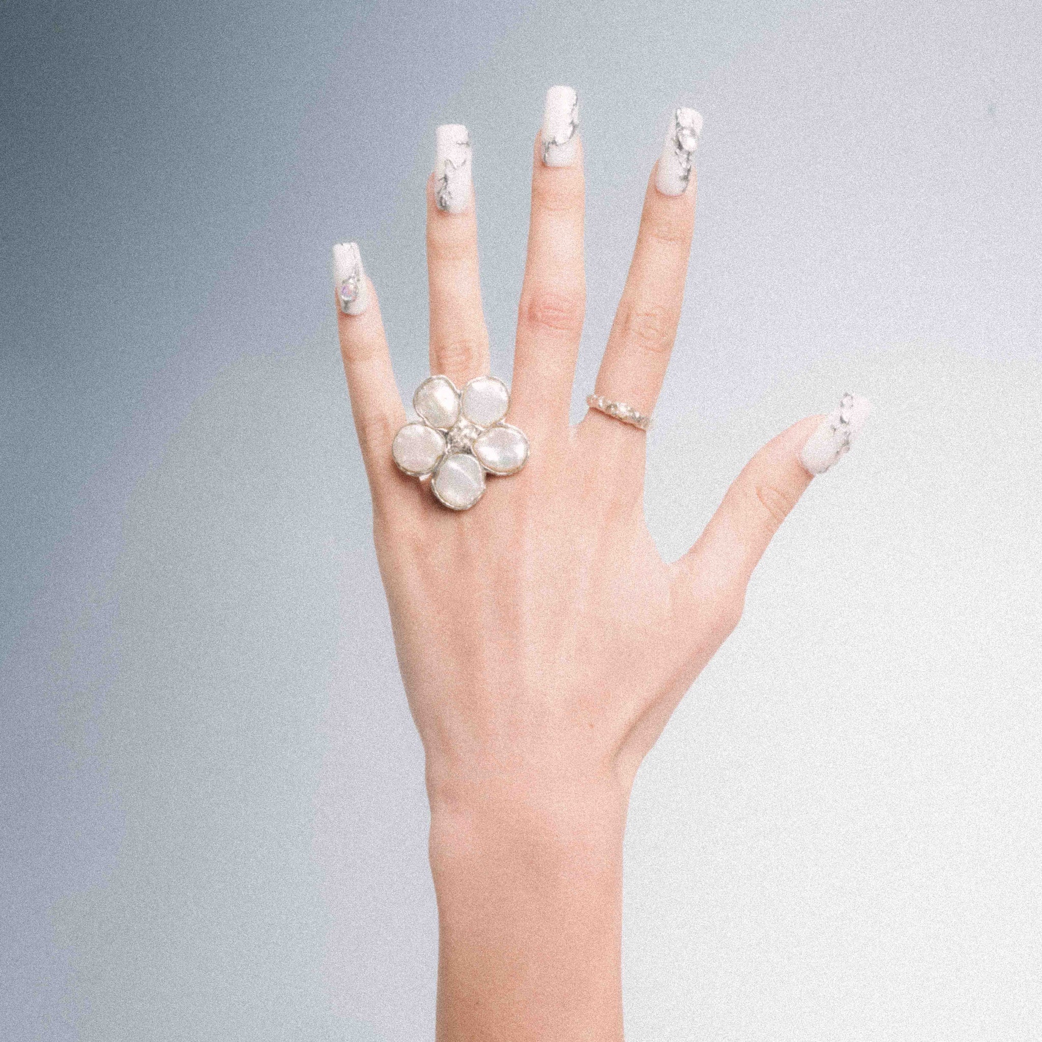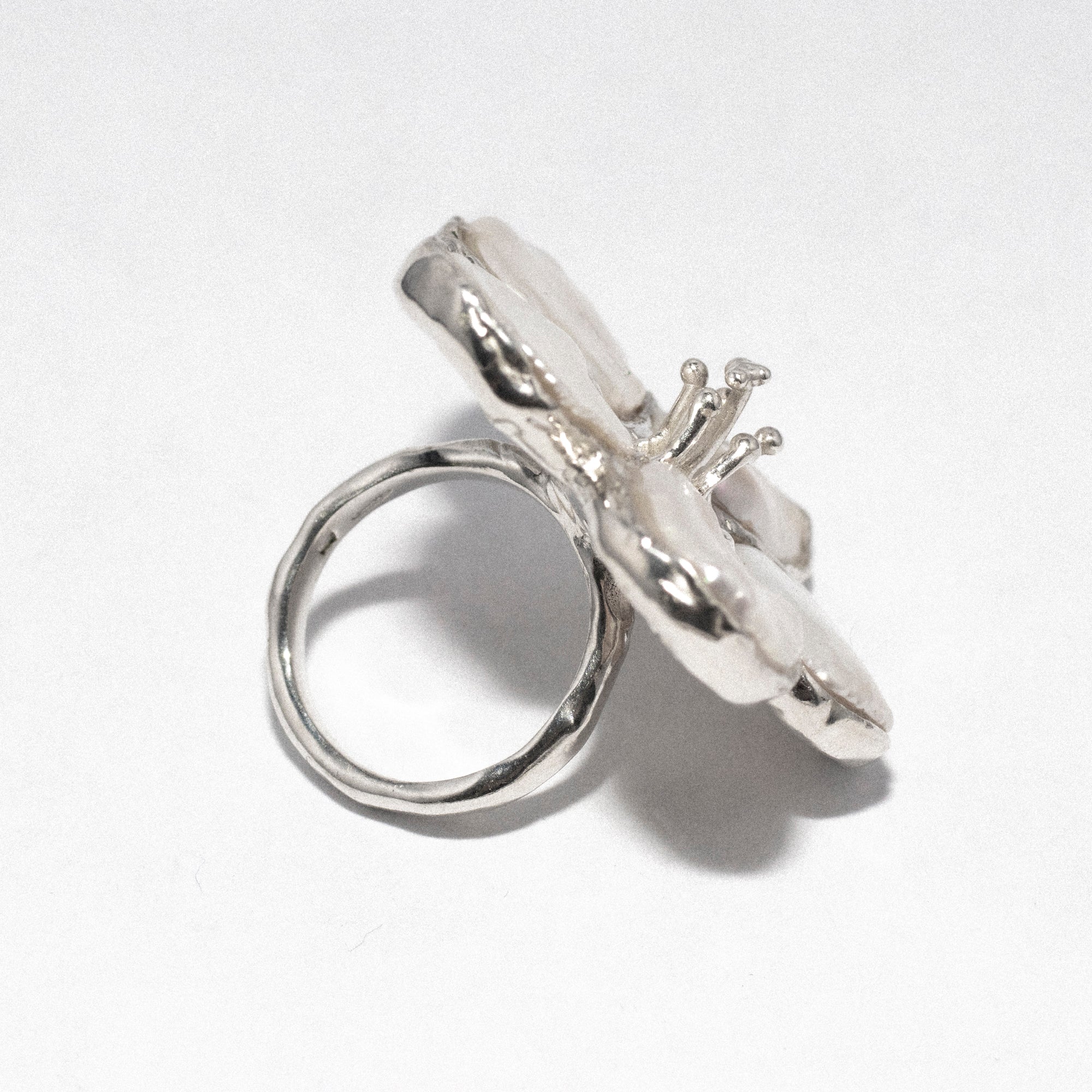 S925 silver Flora ring with white Keshi pearls.