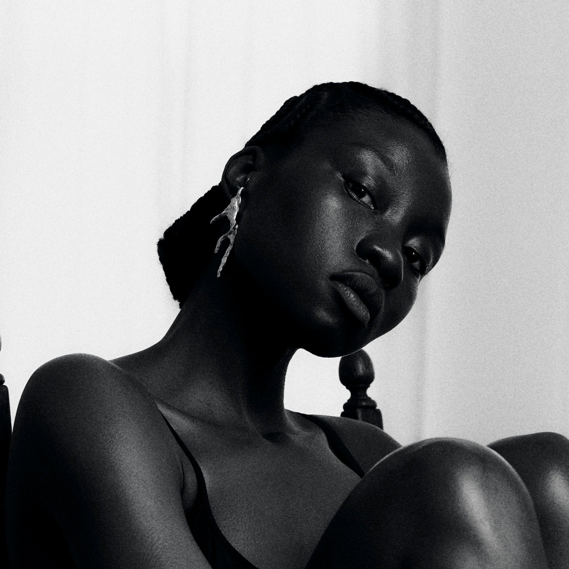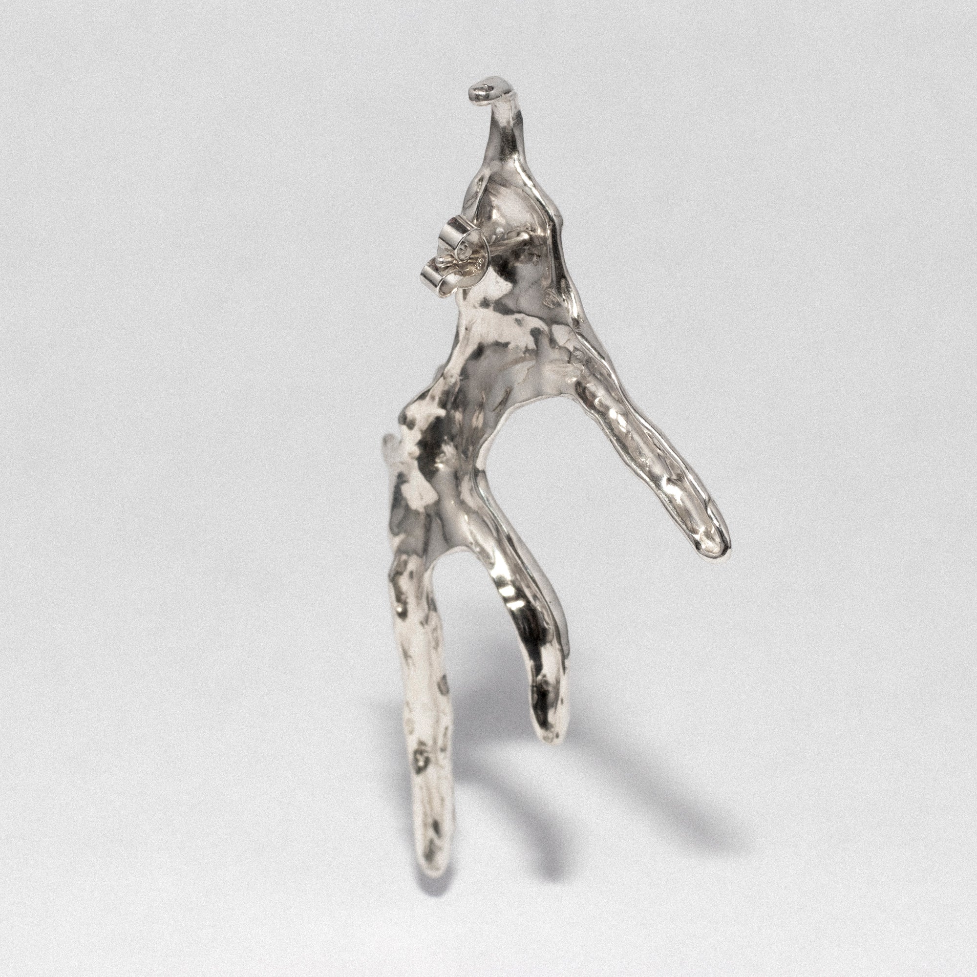 S925 silver earring inspired by a Vietnamese seashell. Despite its 7cm length, it's very lightweight and includes an in-ear cuff to further lighten the load on the ear puncture.