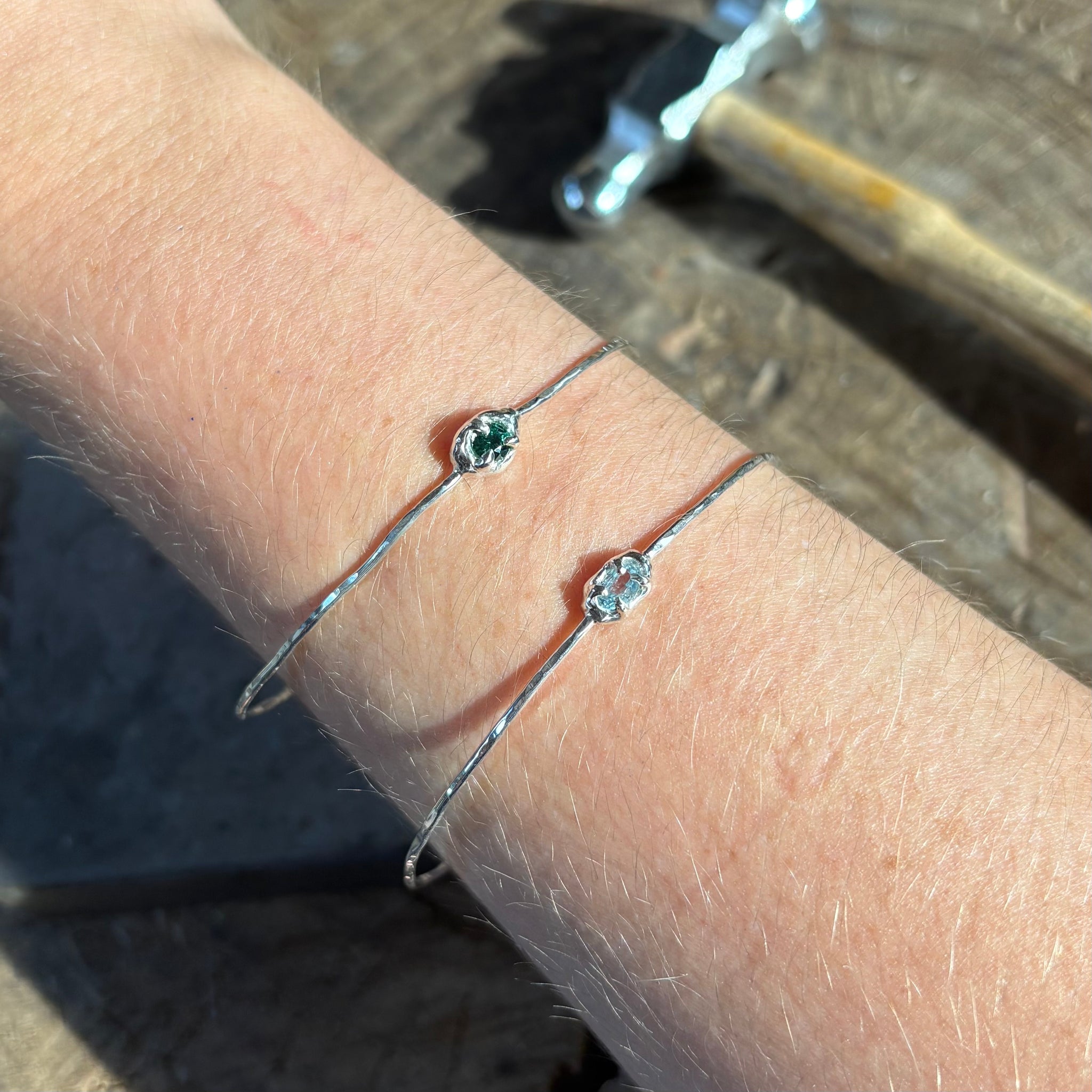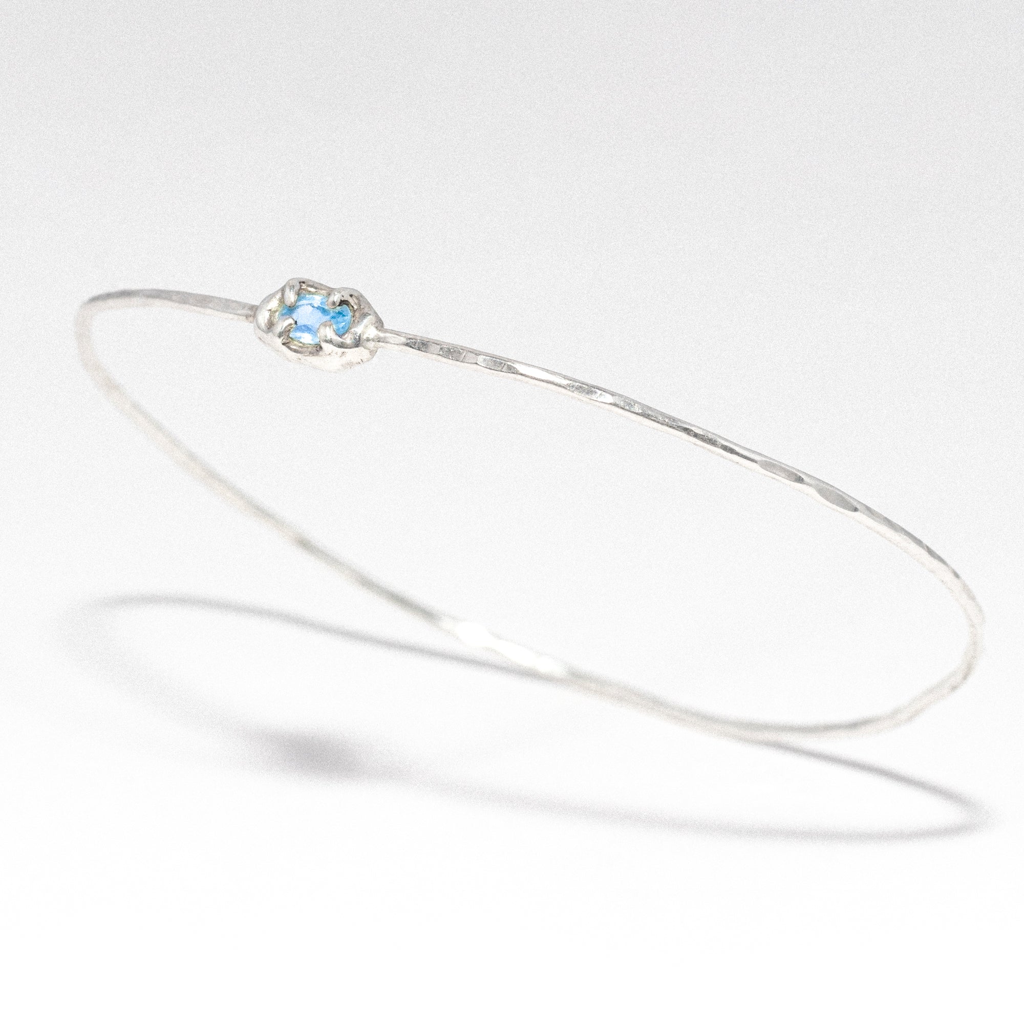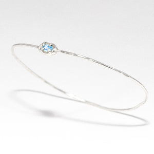 S925 thin silver wire closed bracelet with a blue topaz.